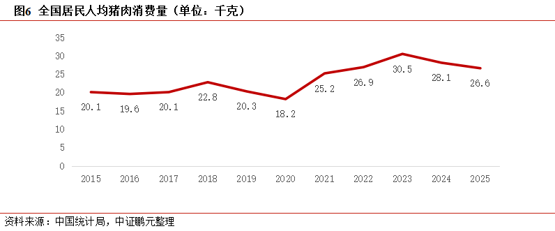 我国东说念主均猪肉骤然量已触天花板,东说念主口结构变化、健康饮食不雅念升级、肉类骤然多元化共同推动猪肉需求进入平台期,天下住户东说念主均猪肉骤然量通顺两年下滑,需求短少弹性增漫空间,成为产能鼓胀的紧要重叠要素,生猪价钱失去需求端的朝上撑捏。