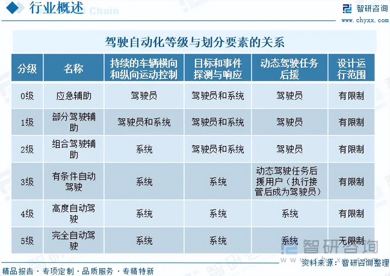高等驾驶援手系统(ADAS)主要包含三个方面:车辆自己;里面硬件(包括传感器、录像头、经营机系统等部件);自动驾驶软件(用于作出驾驶决策)。凭据工信部发布的《汽车驾驶自动化分级》文献中不错得知,自动驾驶分为0-5等第,高等驾驶援手系统(ADAS)处于L0-L2的范围,自动驾驶则罢了了L4-L5的汽车自动化,现在国内大部分汽车处于L0-L1范围之内,改日的市集发展空间至极充裕。