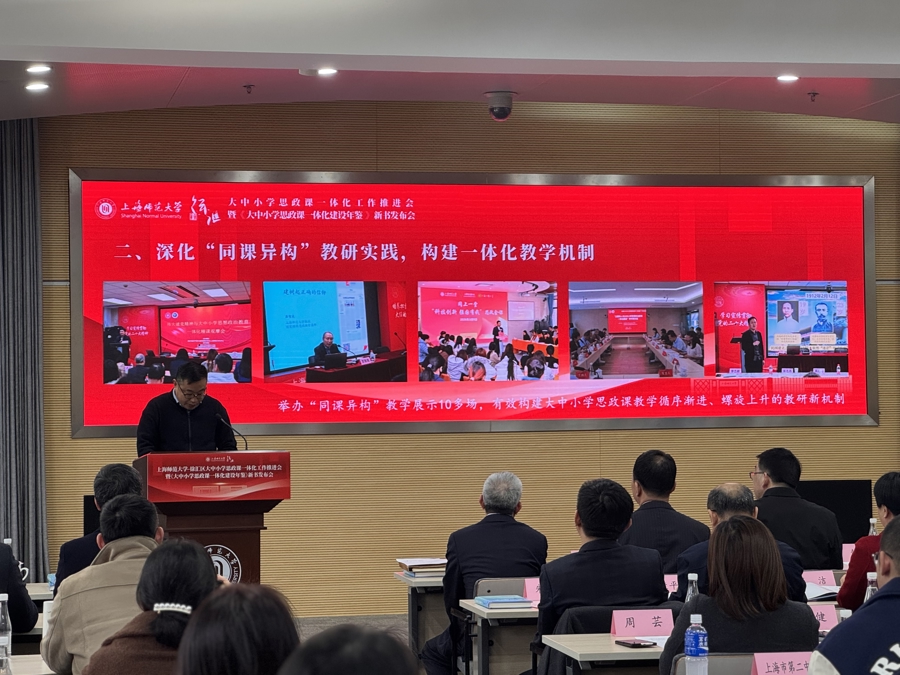 今天地午,上海师范大学-徐汇区大中小学念念政课一体化责任鼓吹会暨《大中小学念念政课一体化竖立年鉴》新书发布会在上海师范大学举行。会上,两边发布了2026年责任清单,明确了十项重心任务,并成立了上海市首个大中小学念念政课一体化竖立结合教研中心,旨在探索校地协同育东谈主新旅途,为新时期树德树东谈主工程孝顺“上海颖异”。