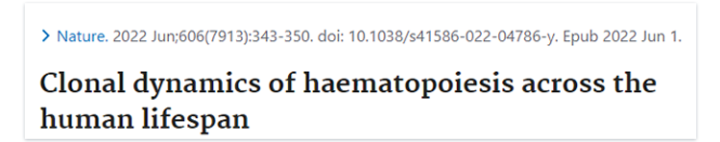 [1]Mitchell, E., Spencer Chapman, M., Williams, N. et al. Clonal dynamics of haematopoiesis across the human lifespan. Nature (2022). https://doi.org/10.1038/s41586-022-04786-y