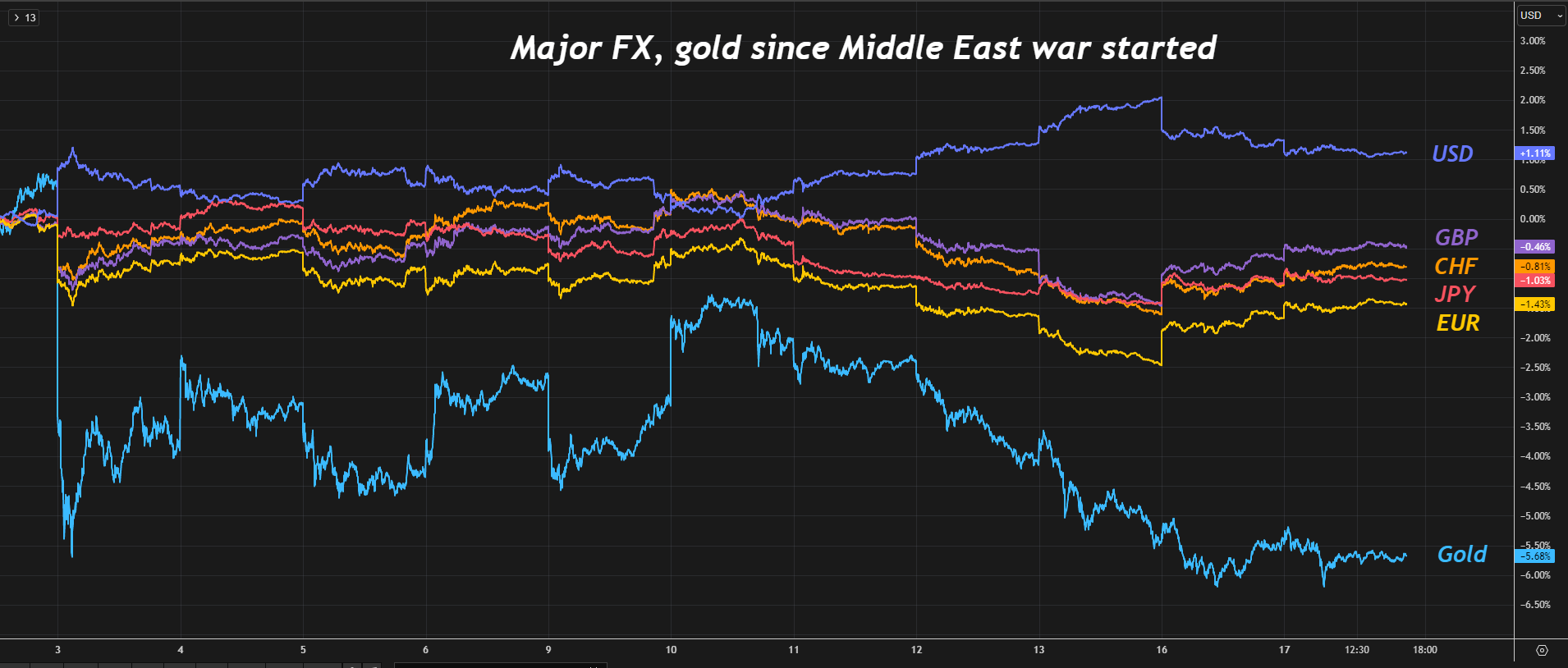 好意思元的发扬照旧盖过了包括瑞郎和日元在内的通盘其他避险货币,并以尽头大的优势率先于国债和黄金等其他传统避险资产。短暂之间,2026年看空好意思元的共鸣似乎已显得极其过期。